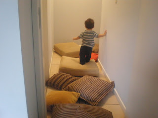 Nathan gosta de sair correndo para eu ir atrás dele. Uma hora vai para a cozinha,
